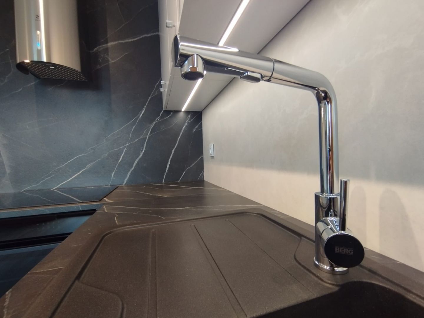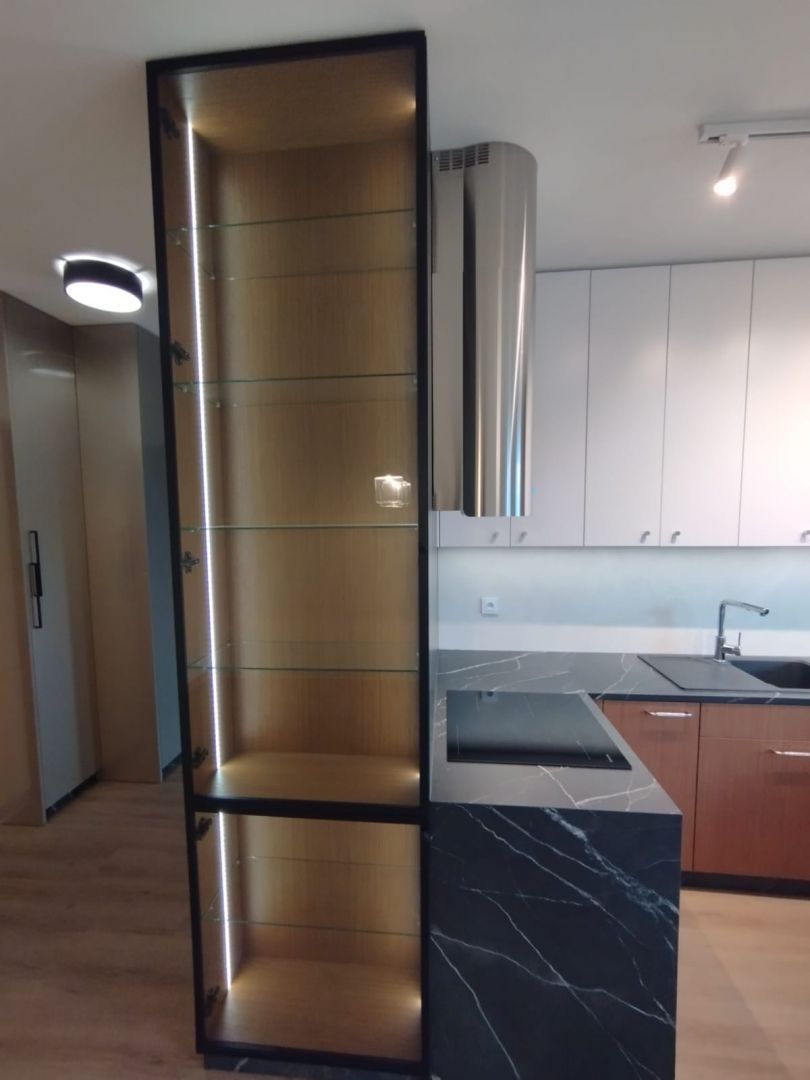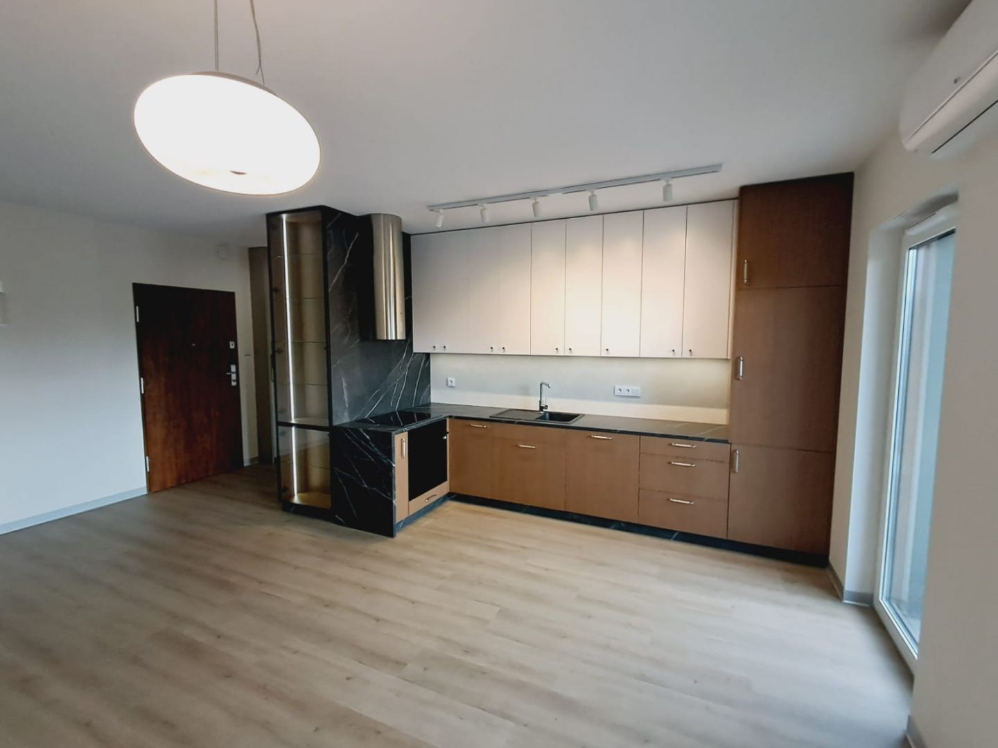 • Aneks kuchenny – w pełni umeblowany i wyposażony w wysokiej klasy sprzęt AGD (okap, zmywarka, płyta indukcyjna, piekarnik, lodówka, zamrażarka).