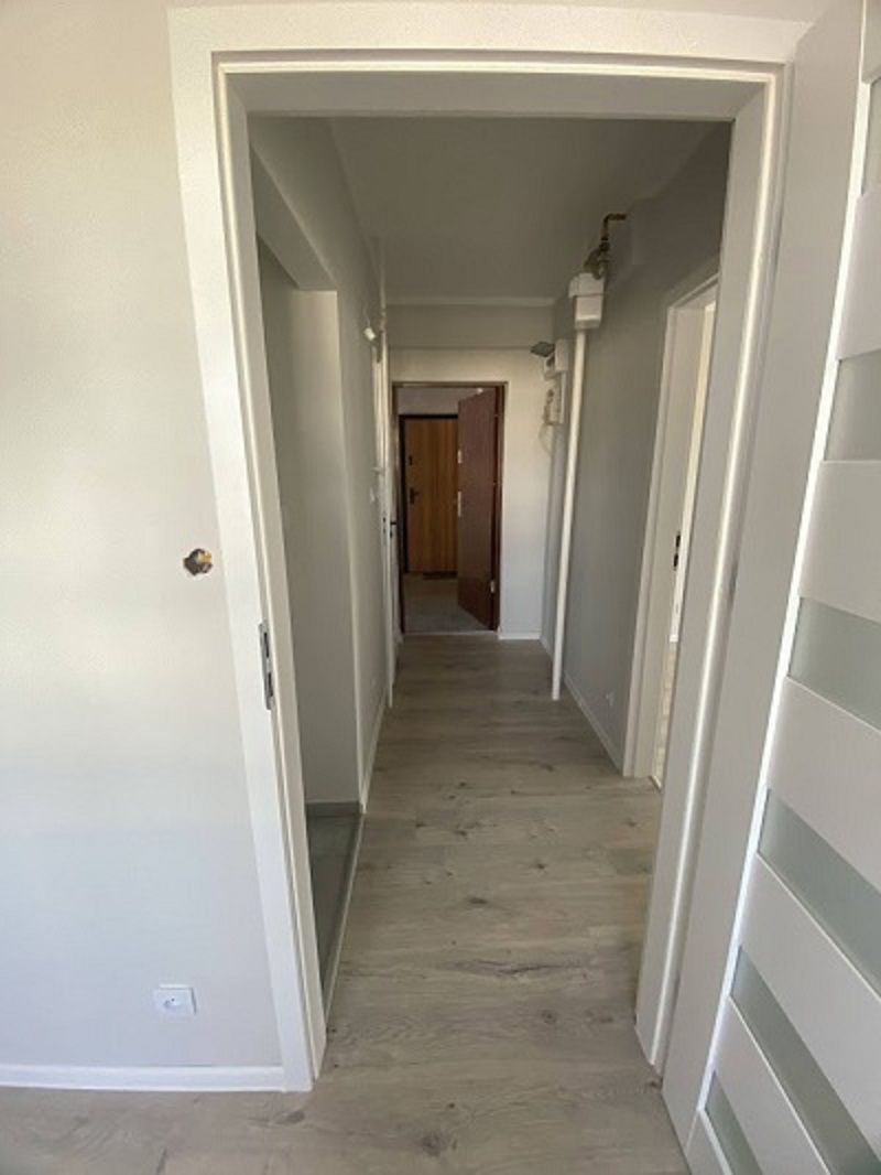 Mieszkanie przeszło gruntowny remont, obejmujący wymianę instalacji elektrycznej oraz hydraulicznej. Zainstalowano nowe drzwi wejściowe oraz wewnętrzne wraz z ościeżnicami. Łazienka została wykończona nowoczesnymi płytkami, wyposażona w prysznic typu walk-in, WC oraz umywalkę. Kuchnia z kolei posiada estetyczne płytki ścienne i podłogowe. W pokojach położono nowe panele oraz listwy przypodłogowe, a ściany zostały starannie otynkowane i pomalowane. Okna PCV marki DRUTEX zapewniają doskonałą izolację termiczną oraz akustyczną.
