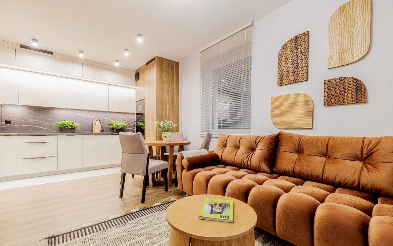 - przestronnego salonu z aneksem kuchennym,