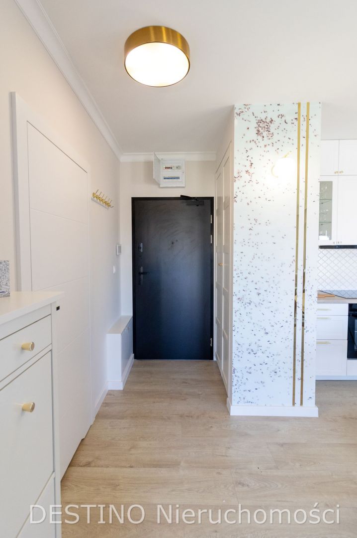 Układ mieszkania: salon z aneksem kuchennym i wyjściem na jeden z balkonów, sypialnia z wyjściem na drugi balkon, łazienka z wc, przedpokój. Kuchnia w pełni wyposażona, ze sprzętem AGD w zabudowie. W sypialni i w przedpokoju szafy. Pomieszczenia słoneczne - w oknach rolety zewnętrzne. Z mieszkania ujmujący widok na Śródmieście. Do mieszkania przynależy jedno miejsce parkingowe w garażu podziemnym (do dokupienia za 25.000 zł). Budynek klasy premium. Osiedle zamknięte, monitorowane, z portiernią na wejściu do budynku. Teren dziedzińca zielony. Czynsz administracyjny ok. 600 zł (za mieszkanie i garaż). Mieszkanie dostępne od ręki. Zachęcam do zapoznania się z tą wyjątkową ofertą.