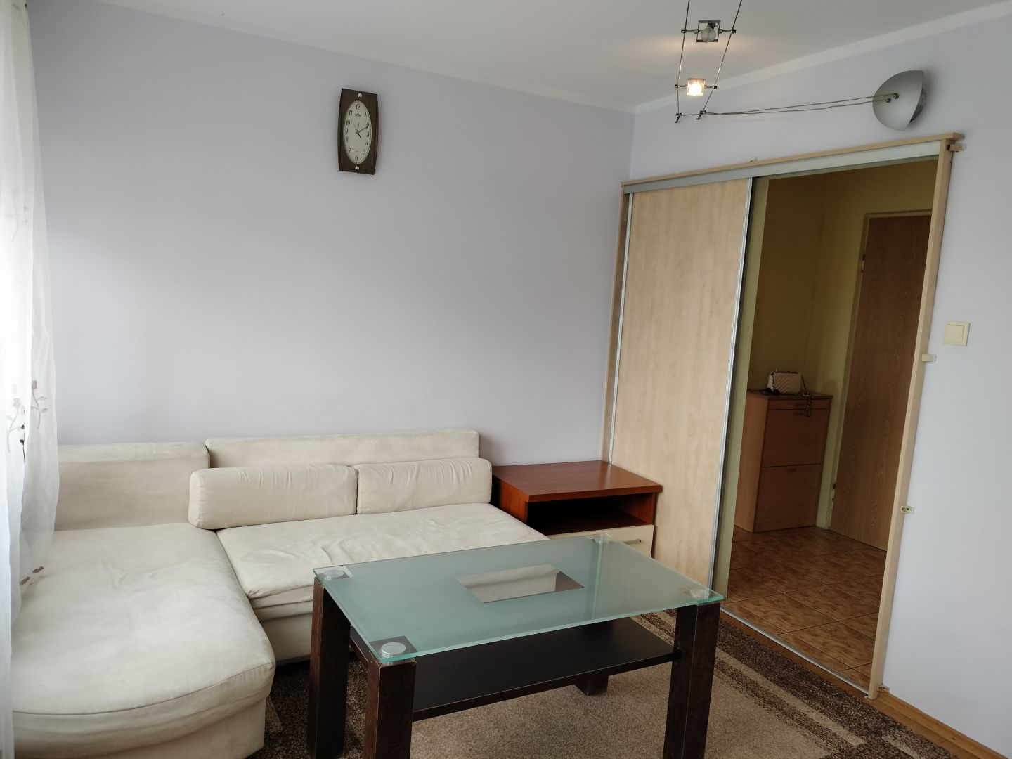 Układ mieszkania: salon z półotwartą kuchnią, sypialnia, łazienka z wc oraz przedpokój.Okna PCV, ich dwustronna ekspozycja.